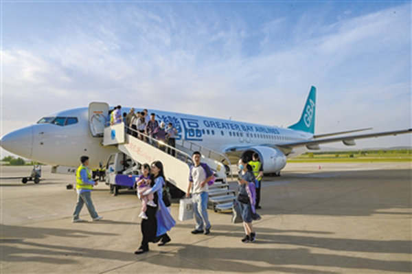 千年古都与国际都市搭建“空中丝路”。5月20日下午,经过3个多小时飞行,满载着184名旅客的HB932航班平稳滑入大同云冈国际机场4号停机位,宣告大同云冈国际机场与香港大湾区航空携手开通的大同⇌香港航线顺利首航,更标志着大同城市开放度进一步提升,城市的吸引力和竞争力进一步增强。