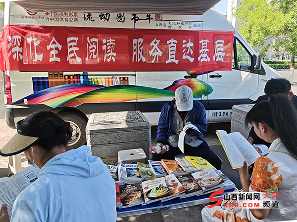 近日,大同市平城区图书馆在北魏明堂遗址公园南门开展“流动图书车”服务。