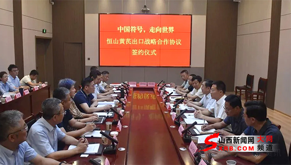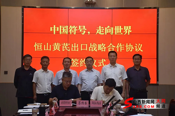 6月26日,中国符号,走向世界——恒山黄芪出口战略合作协议在黄芪文化园一楼会议室成功签约。