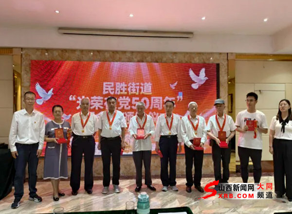 为弘扬党的光荣传统和优良作风,传递对老党员的关心关怀,激励年轻党员赓续红色血脉,6月26日,云冈区民胜街道举行“光荣在党50年”纪念章颁发仪式。
