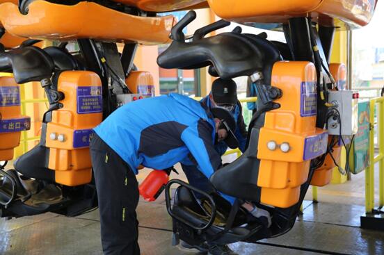 为了让游客安全、放心地游玩,在每场项目结束后,工作人员都会对项目进行全面消毒。此外,大同方特统一对垃圾桶实行“一日两清理两消毒“的措施,并在公共洗手间配备自动洗手液、一次性抽纸等卫生物品,全方位保障游客的安全。