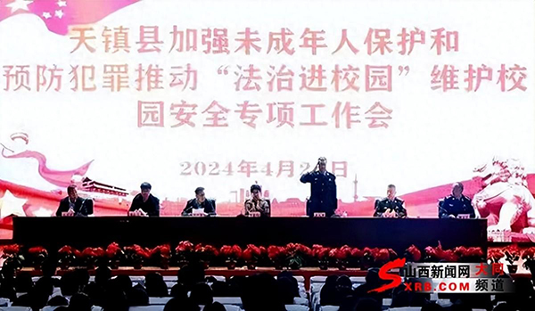 为进一步加强未成年人保护和预防未成年人违法犯罪,筑牢校园安全稳定防线,4月24日,天镇县加强未成年人保护和预防犯罪 推动“法治进校园”维护校园安全专项工作会议在天镇县实验中学多功能厅召开。县委常委、副县长贺荟锦,副县长、公安局党委书记、局长康永兵出席会议并讲话,县教科局党组书记、局长郝世春主持会议,公安局、教科局、法院、检察院、司法局相关负责人,各派出所所长,各学校校长,分管安全、政教副校长,班主任代表、学生代表等参加会议。
