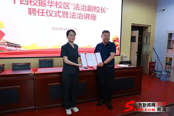 讲座前,平城区第十四小学校振华校区李校长为法治副校长张文波颁发聘书。
