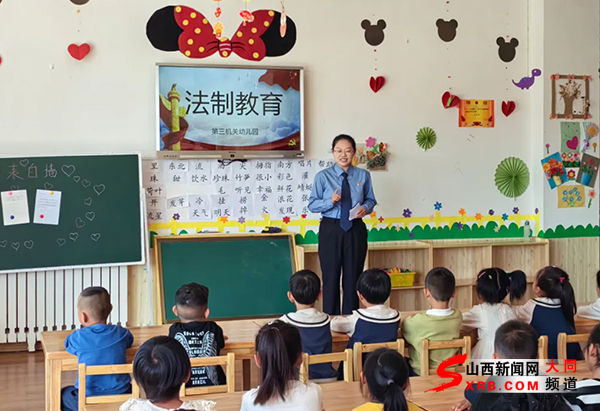 日前,大同市阳高县人民检察院第二检察部检察官牛慧以法治副校长的身份,走进阳高县第三机关幼儿园,开展预防校园欺凌的法治宣讲活动。