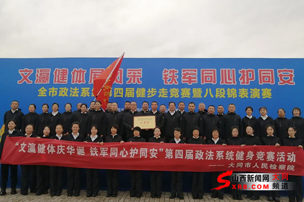 为提升政法系统精神风貌,增强政法干警身体素质,激发干事创业热情,大同市人民检察院积极响应大同市委政法委的号召,于10月26日上午,组织近60余名检察干警前往御东文瀛湖太阳广场,参加“文瀛健体展风采 铁军同心护同安”全市政法系统第四届健步走竞赛暨八段锦表演赛活动。市检察院党组书记、检察长郑黎明参加活动并为单位旗手授旗。