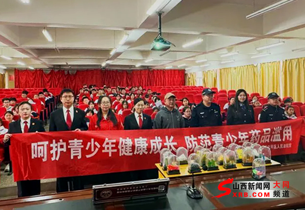 为进一步加强青少年毒品预防教育工作,增强青少年认识毒品、抵制毒品的意识和能力。云冈区人民法院云冈人民法庭联合云冈派出所、云冈镇司法所、彩虹社工走进云冈中学,开展“呵护青少年健康成长 防范青少年药品滥用”禁毒宣传活动。