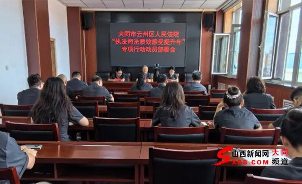 为全面落实市委政法委和上级法院关于提升执法司法质效的工作要求,8月7日下午,大同市云州区人民法院召开“执法司法质效感受提升年”专项行动动员部署会。该院党组书记、院长孟守成出席会议并讲话,常务副院长马晶晶主持会议,班子成员、全体法官、助理、书记员参加会议。