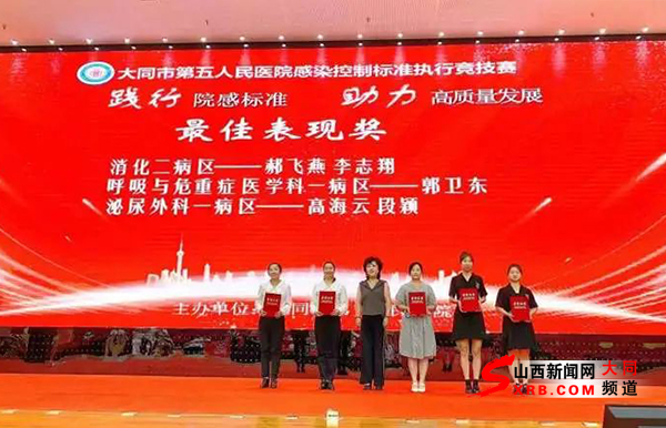 为贯彻落实医院感染控制相关标准,充分发挥标准在诊疗操作中的技术支撑作用,8月11日下午,大同市第五人民医院在学术报告厅成功举办“践行院感标准 助力高质量发展”医院感染控制标准执行竞技赛现场决赛。本次决赛特邀请山西省医疗服务评价中心主任李思敏、山西白求恩医院院感办主任杨芸作为点评嘉宾。大同市第五人民医院党委书记尉杰忠、院长张晋华、副院长李占海、副院长霍月红出席会议,该院部分行政职能科室负责人及全院护士长、感控医师、感控护师,医务联络人参会。