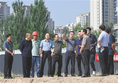 御河灌区西干渠纵贯御东南北,起点位于东坟分水闸,终点至开源街,总长8.413千米,是御河灌区的引水灌溉渠道,同时承担着城市防洪排涝的重要功能。当天,张强先后来到西干渠星港城东南角点位、西干渠恒安街与恒源路交会处西南角点位及文瀛湖引水渠点位,实地查看工程进展,并围绕渠道综合治理、沿线环境规划、生态绿廊建设、人文景观打造等方面工作与相关部门负责同志现场研究讨论、确定推进方案、提出指导性意见。