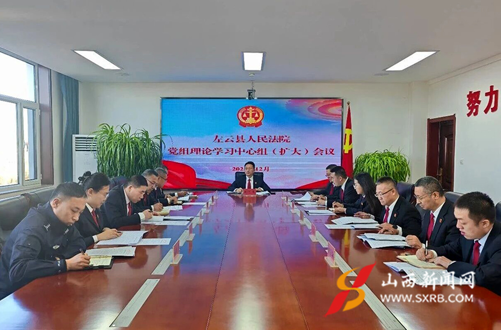 12月25日,左云县人民法院召开党组理论学习中心组(扩大)会议,党组书记、院长刘川文主持会议,班子成员、各部门负责同志参加会议。