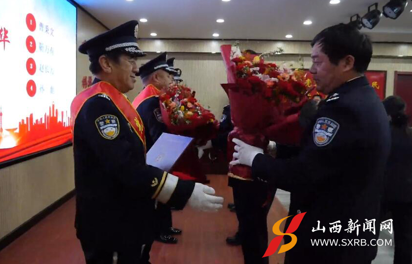 随后,分局全体民辅警欢聚一堂,举行荣誉退休暨新警传承仪式。活动中,大家共同观看了视频,聆听警营心声。分局领导为4位退休民警颁发荣休纪念牌并献上鲜花,向他们致以崇高敬意和深情祝福。退休民警代表为10名新警同志传递警旗。仪式最后,吕献文带领全体民辅警高举右拳,重温入警誓词。